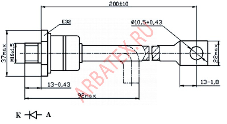 Масса диода не более 290 г.