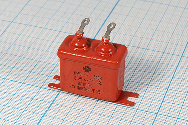 ОМБГ-2 630В 0.25 мкф конденсатор металлобумажный высоковольтный импульсный, выпускается в герметичном прямоугольном корпусе с лепестковыми выводами, предназначен для работы в цепях постоянного, переменного и пульсирующего токов, конденсатор относится к разделу пассивных электронных компонентов.