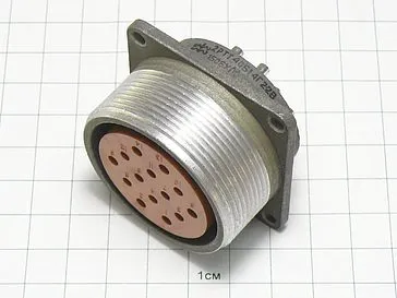 Цилиндрический низкочастотный соединитель 2РТТ40Б14Г22В пылебрызгозащищенный, предназначен для работы в электрических цепях постоянного и переменного  токов частотой до 3 МГц при напряжении до 850 В.